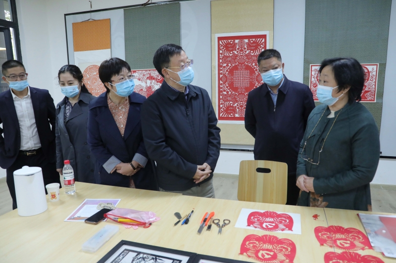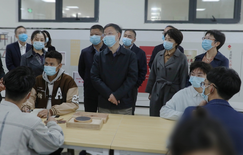 调研期间,戴允康先后前往我院演播厅、图书馆、实训室和皮影、剪纸非遗工作室等地,实地查看学院基础设施建设。