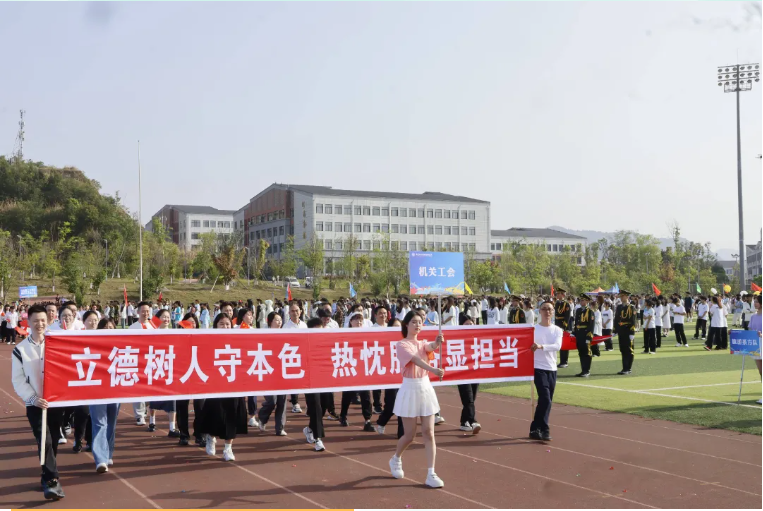 校党委书记王荣秀宣布:南充文化旅游职业学院第四届学生运动会暨教职工趣味运动会开幕!
