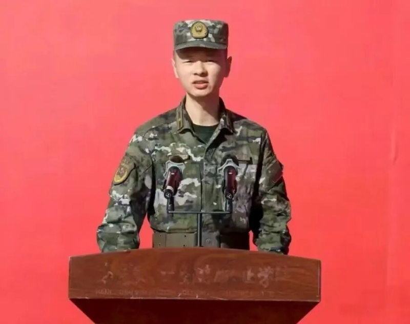 军训教官代表发言,他表示,将认真履行职责,确保绝对安全,从自我做起,以良好的军人形象带领大家,以过硬的军事本领引导大家,科学组训、文明施训,高标准、高质量,圆满完成此次军训任务。